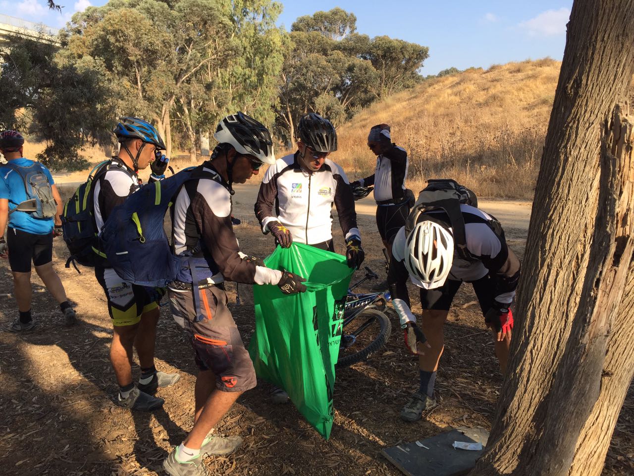 רגע לפני יום הניקיון: רוכבים עם שקיות