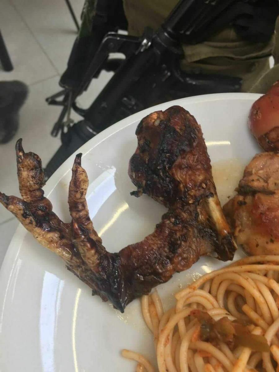 סערה בצבא - חיילת בעיר הבה''דים קיבלה מנה מזוויע לארוחת צהריים: רגל עוף מלאה, שבורה ועם הציפורניים. איש לא שם לב, לא במהלך הבישול ולא במהלך ההגשה, לאיכות המנה. בצה''ל פתחו בחקירה.