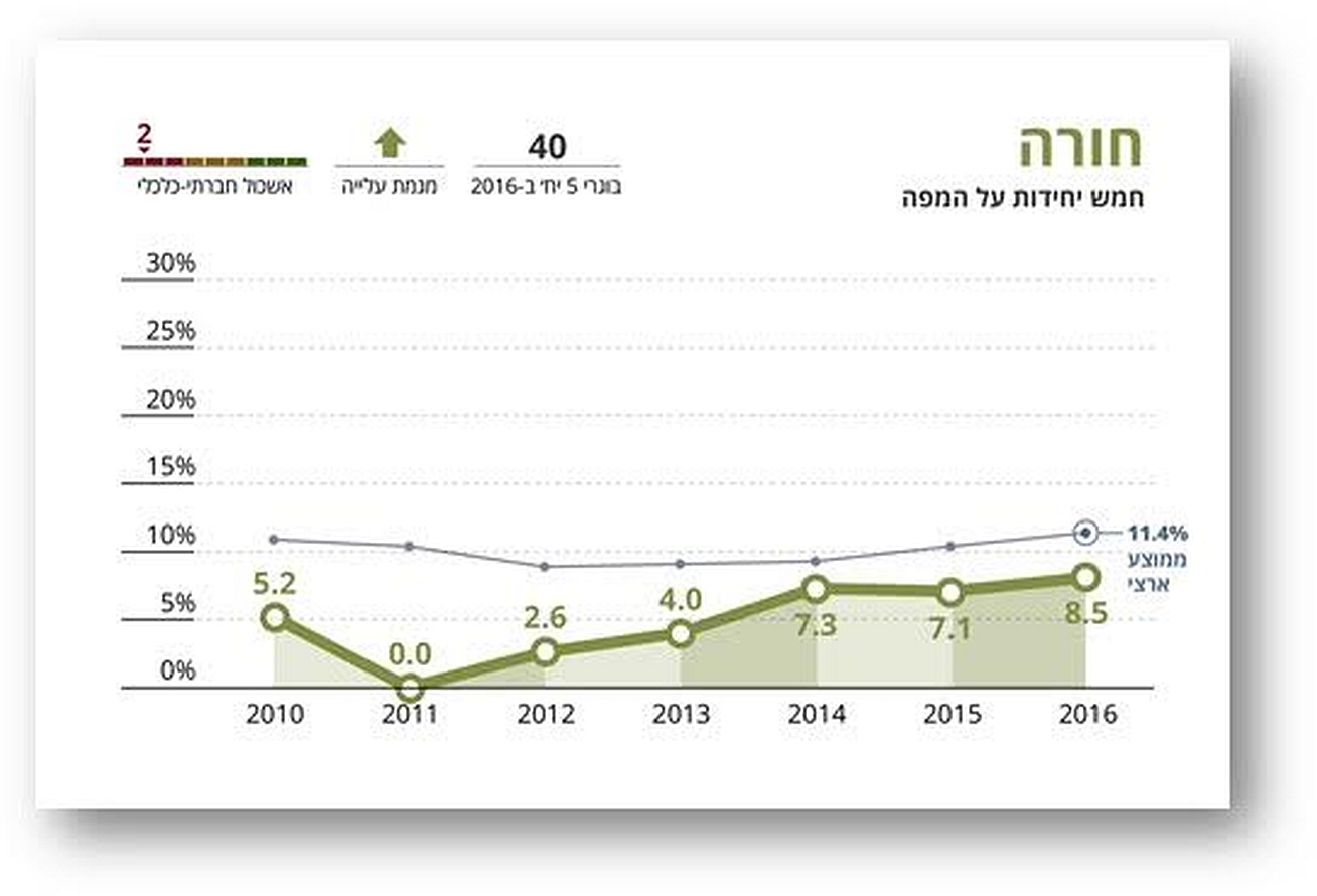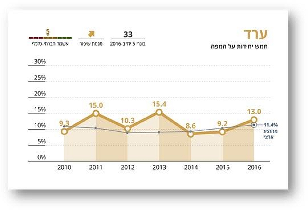 ערד: שיפור של 52% מאז תחילתה עשור, מעל הממוצע הארצי