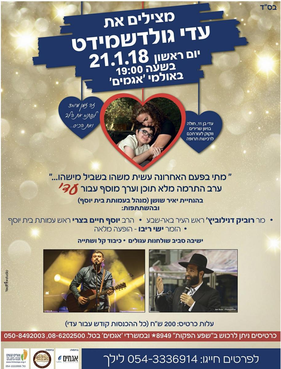ערב ההתרמה שיאיר שושן מסייע לארגן למען הילד עדי גולדשמידט