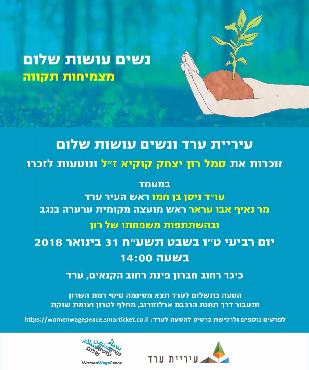 ביום רביעי הבא (31.1, ט"ו בשבט) ייערך אירוע נטיעות משותף של נשים בדואיות ויהודיות לזכר רון קוקיא ז"ל שנרצח בפיגוע הדקירה בערד לפני כחודשיים.