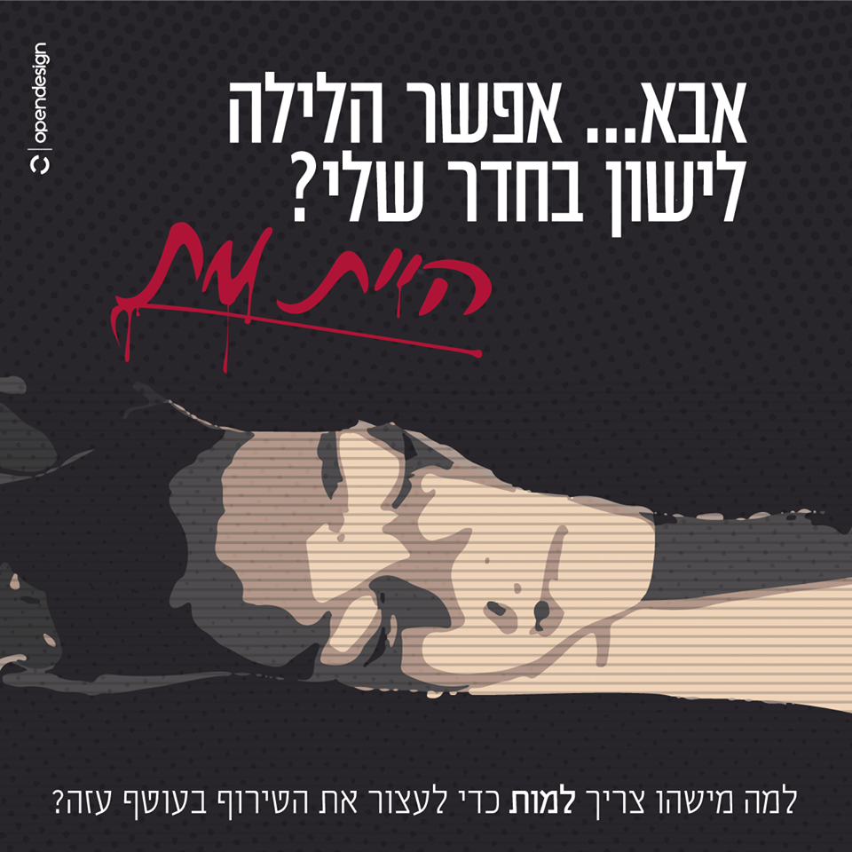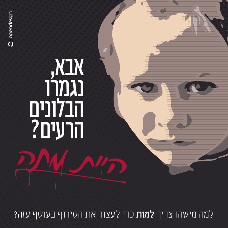 כך, בכרזה נקיה ומזעזעת, ביטא אורי אופן, מעצב גרפי וארט דייקרטור באביעוז קריספין, את חוסר האונים שחשים בימים אלה תושבי הדרום בכלל ותושבי עוטף עזה בפרט. ''גדלתי בעוטף. ההורים עדיין גרים בשדרות. אני אב לשתי בנות ותושב באר שבע כיום. ישנה תחושה, שכל עוד לא מת אף אחד, אפשר להמשיך לתת לחמאס לקבוע לנו את סדר היום, לטווח בתושבים, להרוס את כל שגרת יומם, עמלם ופועלם רב השנים. באמת צריך לחכות שמישהו ייהרג לפני שמחזירים את ההרתעה הישראלית וקונים שקט לעוד כמה שנים?'', שואל אורי.