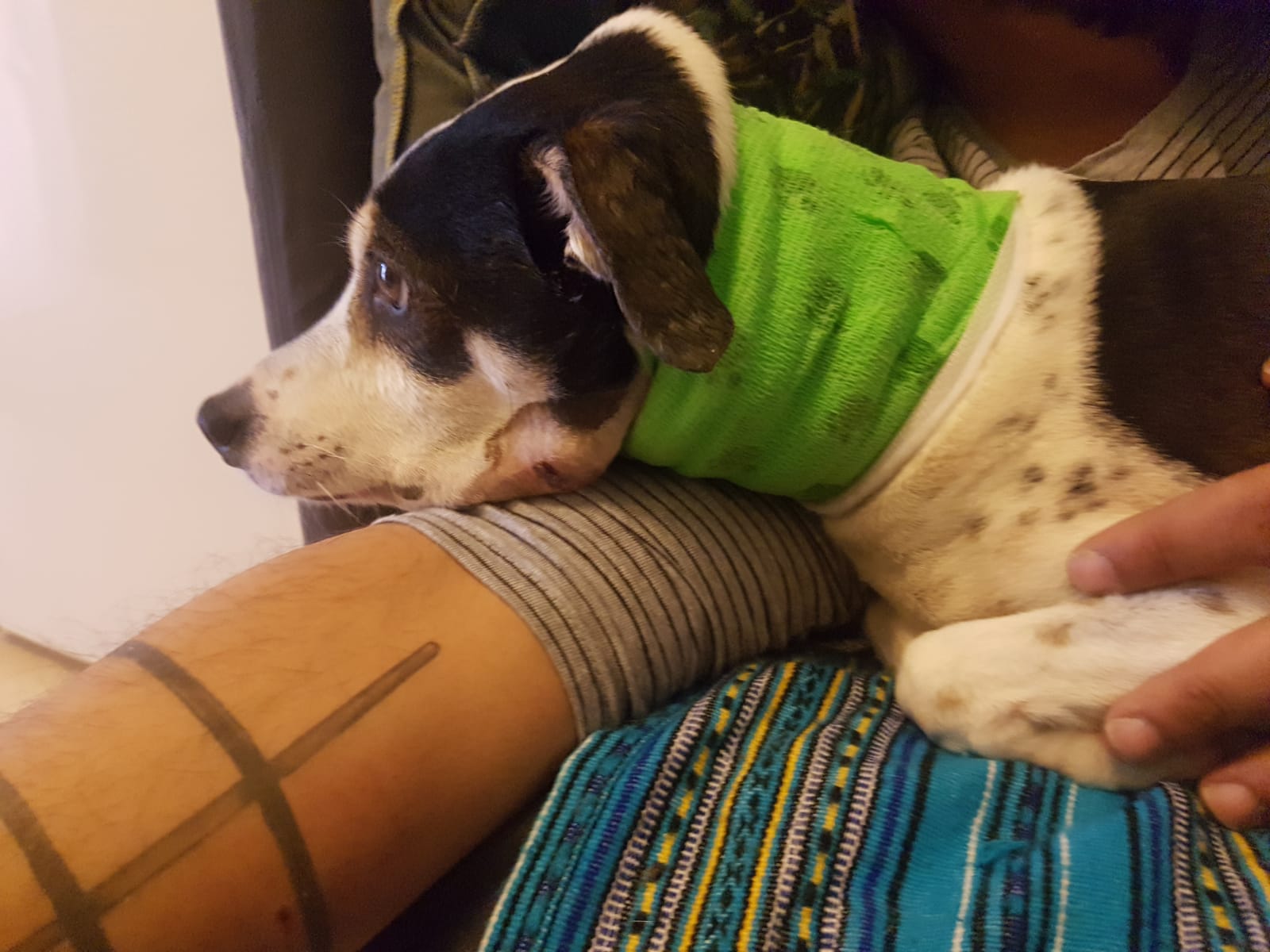הכלב של תמר ננשך בצווארו ובמזל לא נפגע בכלי דם (צילום סלולרי)