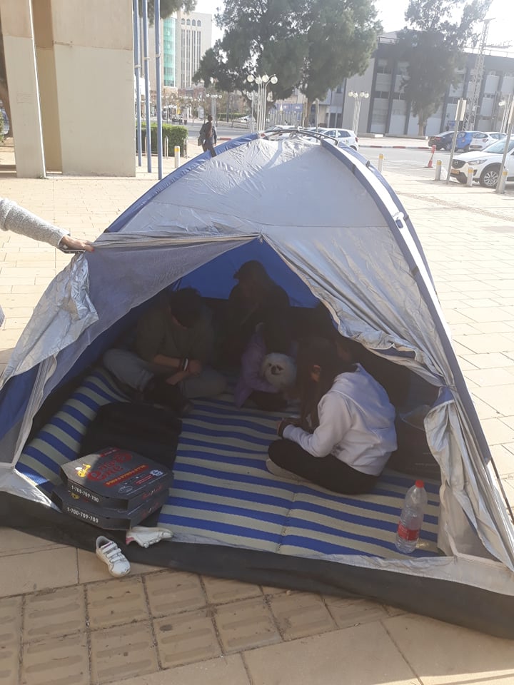 פניה בנושא שלה הועלתה בקבוצת באר שבע ביחד, על מנת שתושבים בבאר שבע ייסיעו היכן שהרשויות אוטמות את הלב. בשעות האחרונות נערך מירוץ מסביב לשעון, בין מתנדבים ופעילים, לסדר לאימא וחמשת בנותיה מקום לינהף כדי שלא יבלו את הלילה באוהל.