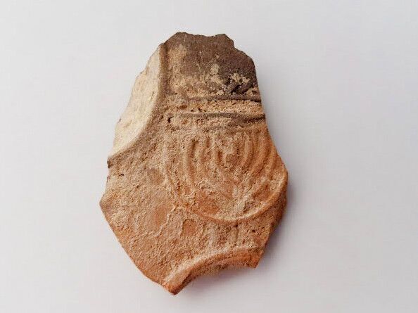 שבר הנר עם עיטור המנורה (צילום: ענת רסיוק, רשות העתיקות)