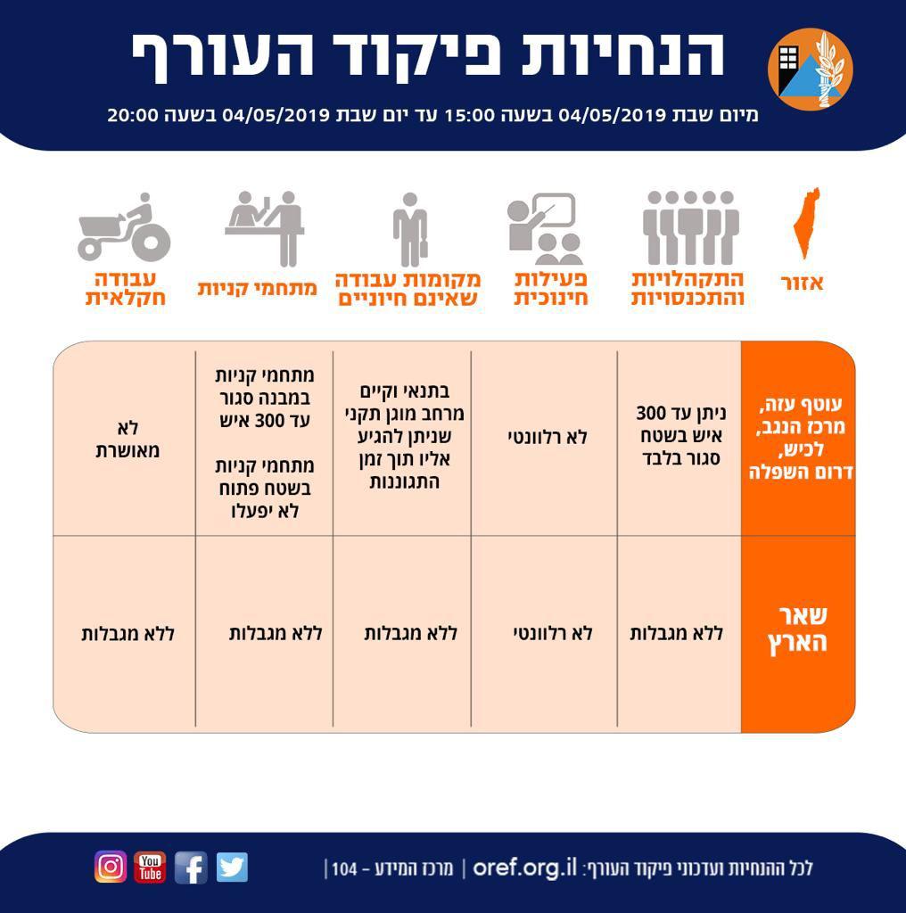 דובר צה''ל מסר כי כלי טיס של צה"ל תקף לפני מספר דקות שני משגרי רקטות בצפון רצועת עזה. מוקדם יותר, לאור הערכת המצב הוחלט בצה״ל על חסימת אזורים וצירים הסמוכים לגדר המערכת. האזורים והצירים שייחסמו הינם כלל צירי הגישה מערבה מכביש 232. כמו כן, תיאסר כניסה לגבעת ״קובי״ בשדרות, גבעת הפעמונים, אתר ״חץ שחור״, גבעת נזמית וגבעת הפרש הבודד. בנוסף, הוחלט על סגירת חוף זיקים למבקרים.