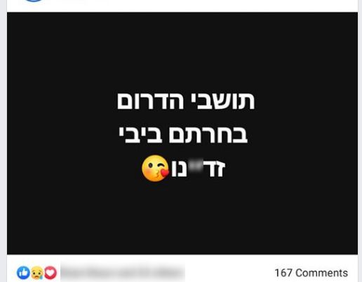 מאז החל סבב הלחימה מתפרסמים פוסטים רבים, הקוראים לא לתמוך בתושבי הדרום המופגזים, לא להושיט להם עזרה ולא להראות כלפיהם סימפטיה, בשל תמיכתם בנתניהו. חלק מפוסטים לא ניתן אפילו לצטט, בגלל לשונם הגסה והמשתלחת. מדובר בדברי שנאה של ממש כלפי תושבי הדרום.
