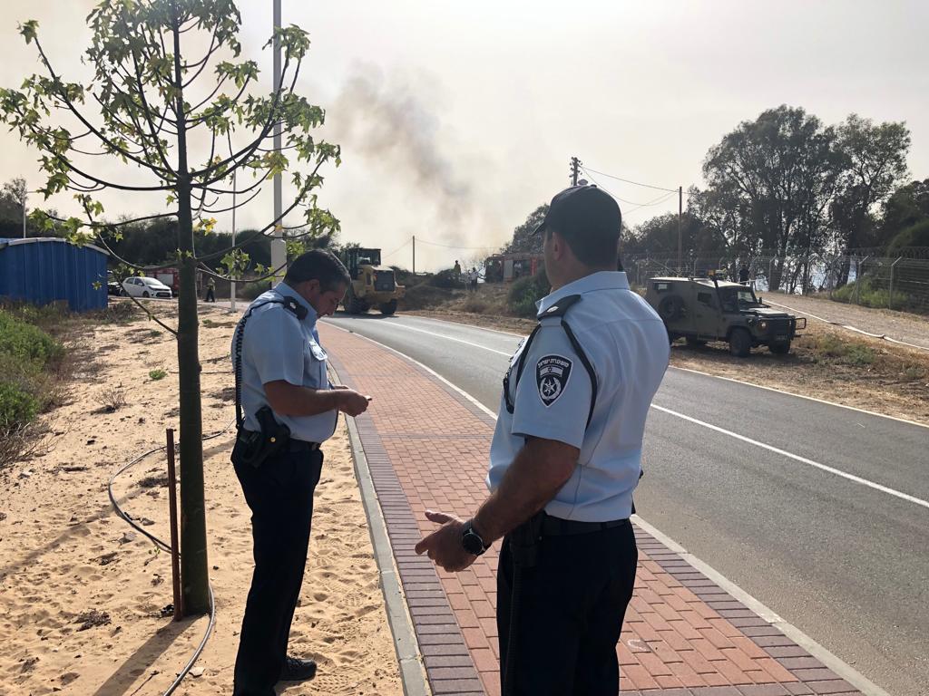 כוחות משטרה בזירת השריפות במערב הנגב (צילום: דוברות המשטרה)