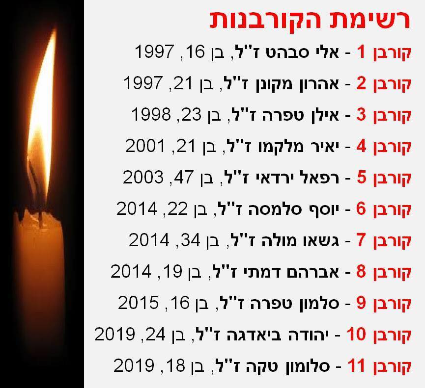 רשימת הקורבנות מבני העדה האתיופית במגע מול משטרה, שהוקראה הערב במספר הזדמנויות במהלך הצעידה (מתוך ''צדק חברתי - חדר מצב''). יהי זכרם ברוך!