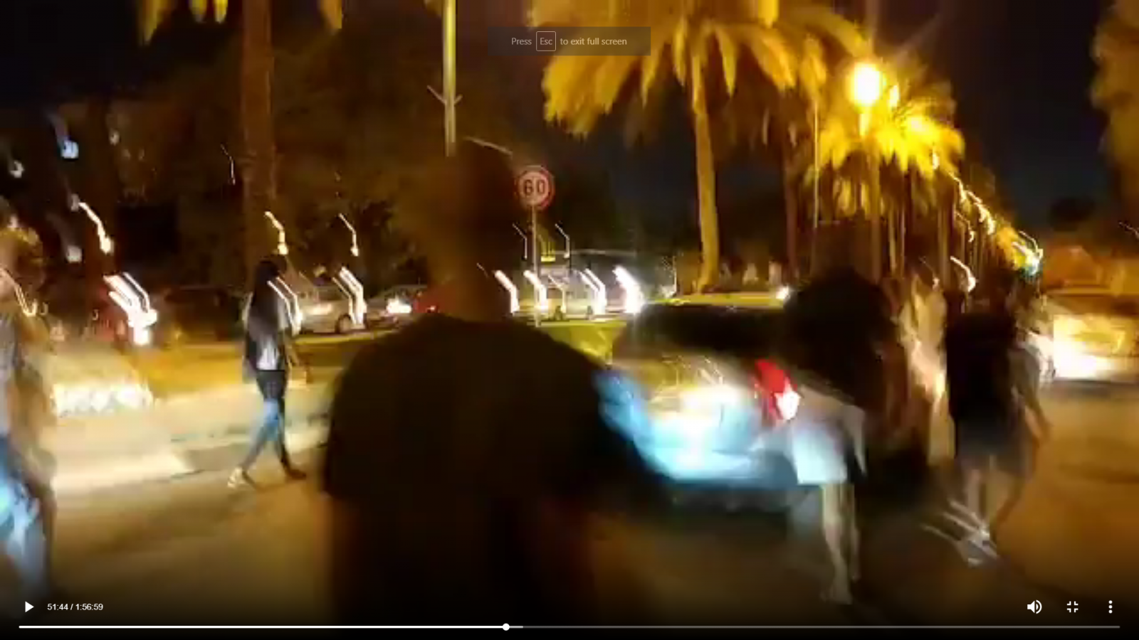 למקום הגיעו כוחות משטרה וניסו לשכנע את הצעירים להתפזר, אבל הקהל רק הגביר את הזעקה שלו. כמעט כל הנהגים חיכו בסבלנות, צפרו צפירות הזדהות. אלא שבמהלך הערב כמעט קרה אסון: כאשר המפגינים הלכו על דרך שמשון-מצדה, מונית ניסתה לדרוס את אחד המפגינים. כעבור כמה דקות, רכב אחר דרס ופגע במפגין, עשרות צעירים התנפלו עליו והשליכו לעברו ברזל והרכב נמלט במהירות, תוך שהוא מסכן את הצועדים האחרים.