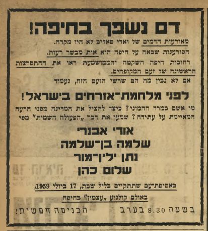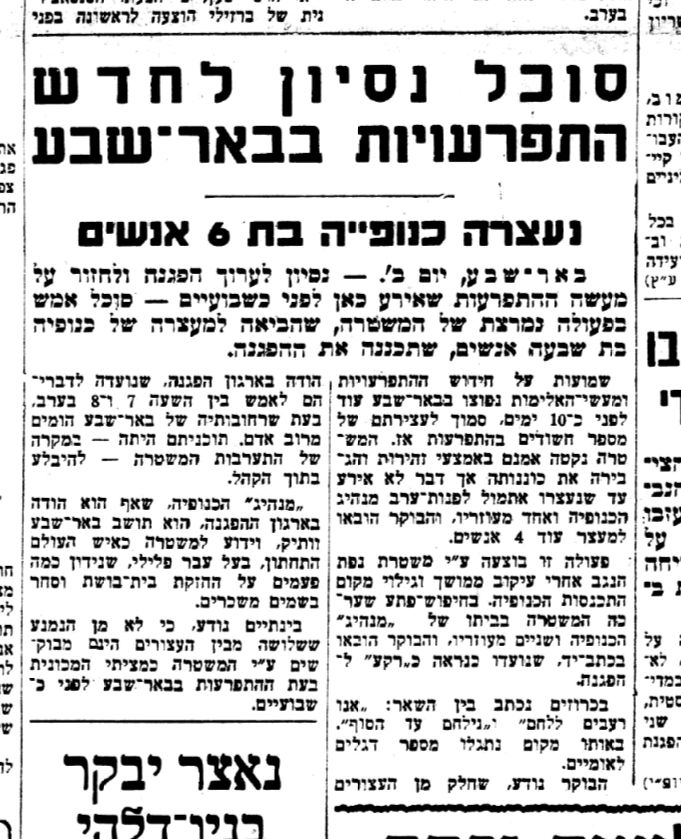 מתוך ''על המשמר'', 3 באוגוסט, 1959. מארגני ההפגנות כונו ''אנשי העולם התחתון'' (מתוך ארכיון עיתונות יהודית)