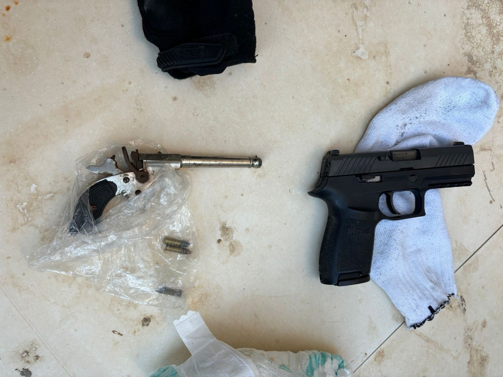 במהלך החיפוש שבוצע במתחמי ביתם נתפסו 2 אקדחים, רובה מסוג קרל גוסטב, מערכת הפעלה, טלפונים, מחסניות, תחמושת וסמים.
