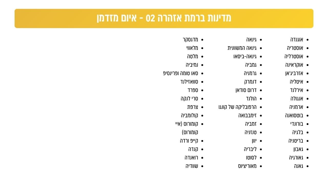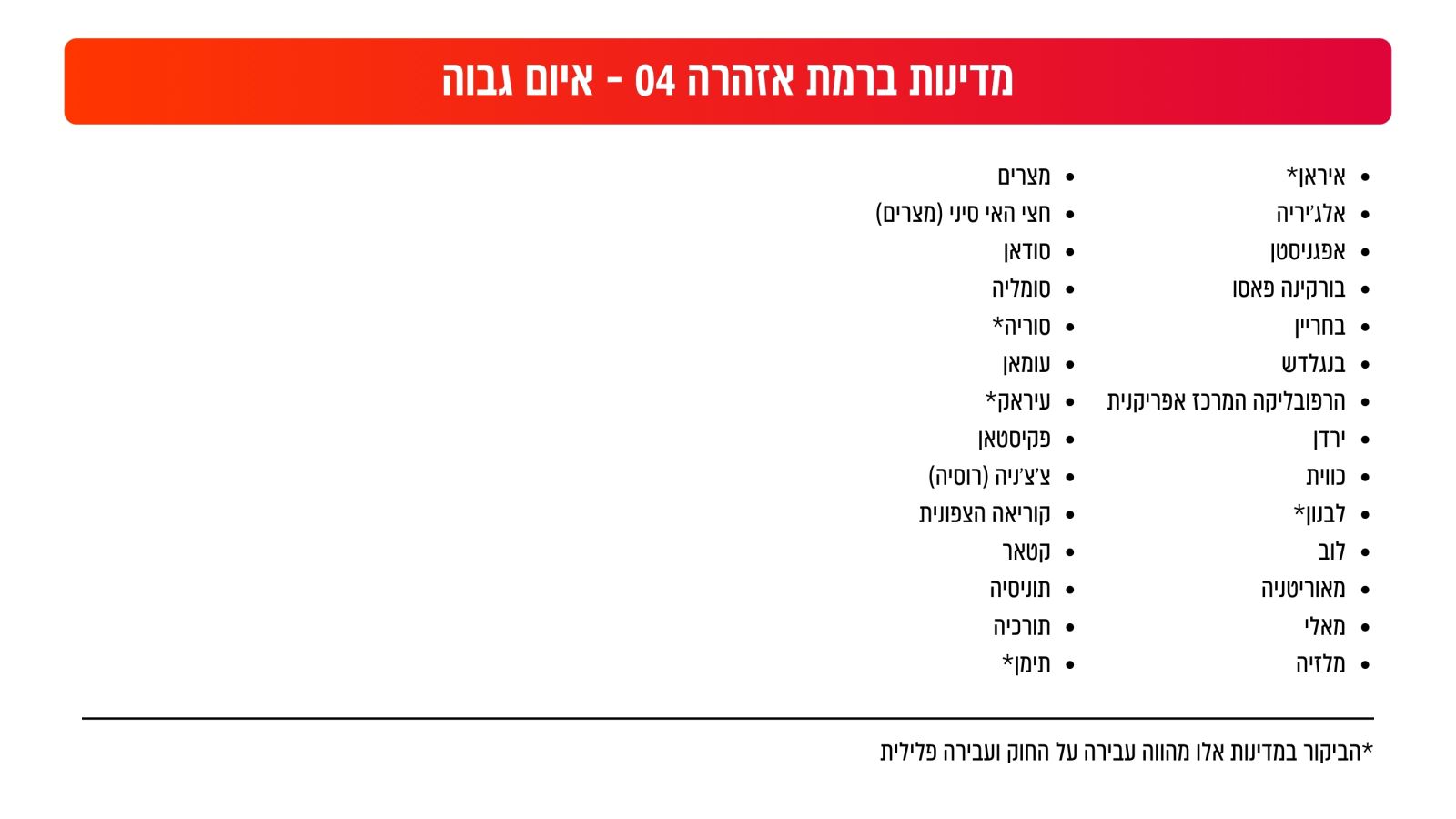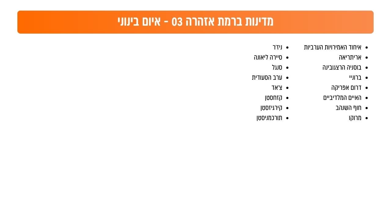הטבלאות - רמת האיום לפי מדינה (מתוך אתר המל''ל)