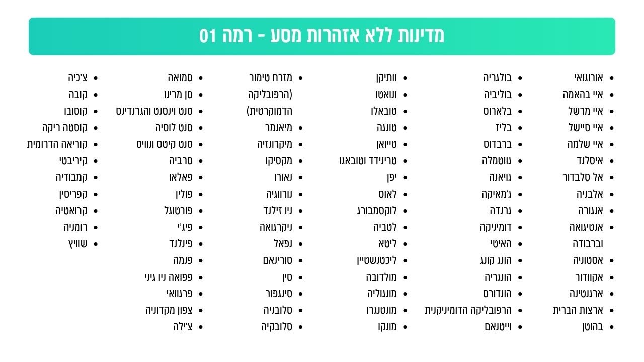 חודש החגים יוצא השנה ברובו בימות השבוע, וישראלים רבים מתכננים לנצל את ימי החופשה הארוכים לנסיעה לחו"ל. עם זאת, לקראת גל הטיסות הצפוי בנתב"ג, מפרסם המטה לביטחון לאומי (מל"ל) מפת התרעות חריגה בהיקפה – המשקפת את המציאות הביטחונית והמדינית המורכבת של ישראל.