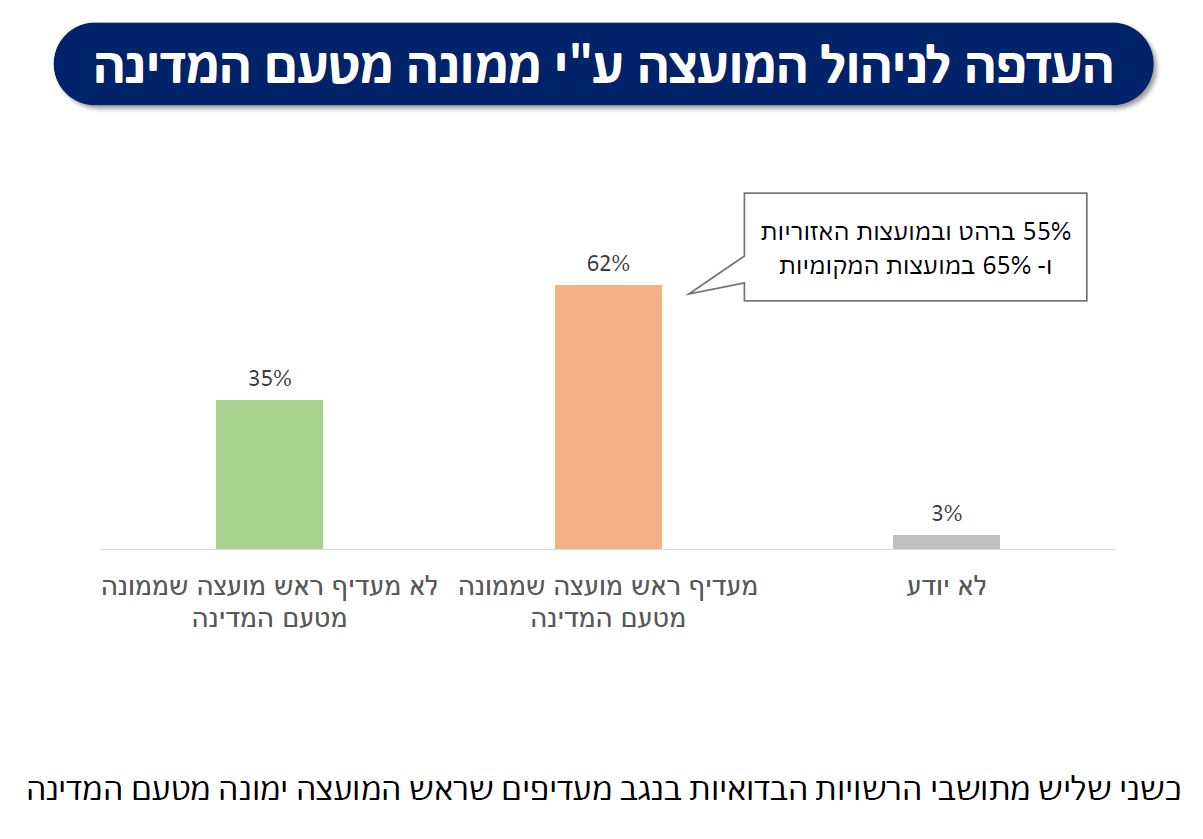 אחד הנתונים הבולטים בסקר מצביע על קריאת תושבים לפעול בשיתוף פעולה עם המדינה ועם גורמים מקצועיים כדי להוביל שינוי. המסר המרכזי הוא שאין עוד אמון מוחלט במנהיגות המקומית הוותיקה, וכי הציבור מחפש כיוון חדש - פחות פוליטי ויותר ביצועי. המסקנה המשתמעת ברורה: התושבים אינם מסתפקים עוד בהצהרות זהות ומאבקי כוח; הם רוצים משילות, אכיפה, פיתוח כלכלי ושלטון מקומי יציב שמצליח לעשות סדר פנימי.