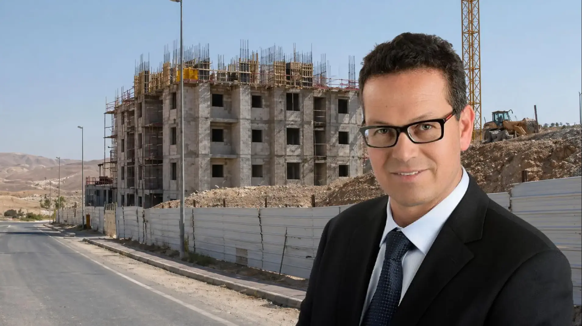 ראש עיריית ערד יאיר מעיין על רקע העיר, ברקע סערה פוליטית סביב שיווק מגרשים. צילומים: יהושע אשכנזי - עיריית ערד, המחשה