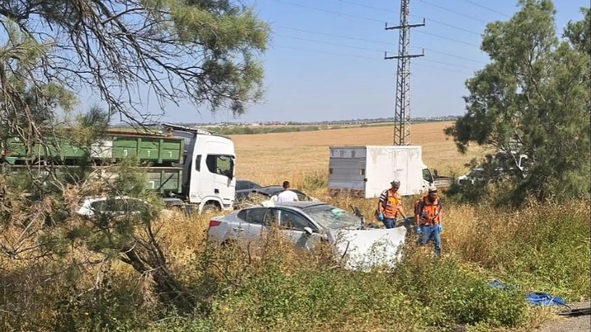 תאונה קשה בדרום: בן 50 נפצע קשה בהתנגשות בין שלושה כלי רכב ומשאית