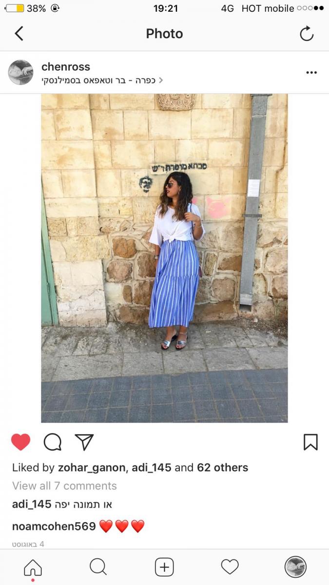 חצאית מקסי עם הדפס פסים לרוחב, בצבעי כחול ולבן שנרגיש תוצרת הארץ , חולצת טי שירט לבנה קשורה בקטנה, ואיך לא נוסיף ללוק קיצי , זרוק וזורם משקפי שמש, עגילי חישוק ויאללה יצאנו לדרך.