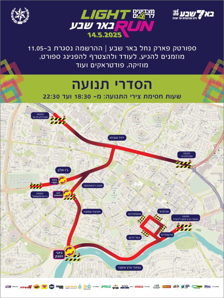 Внимание: масштабные изменения в организации дорожного движения из-за ночного забега Light Run в Беэр-Шеве